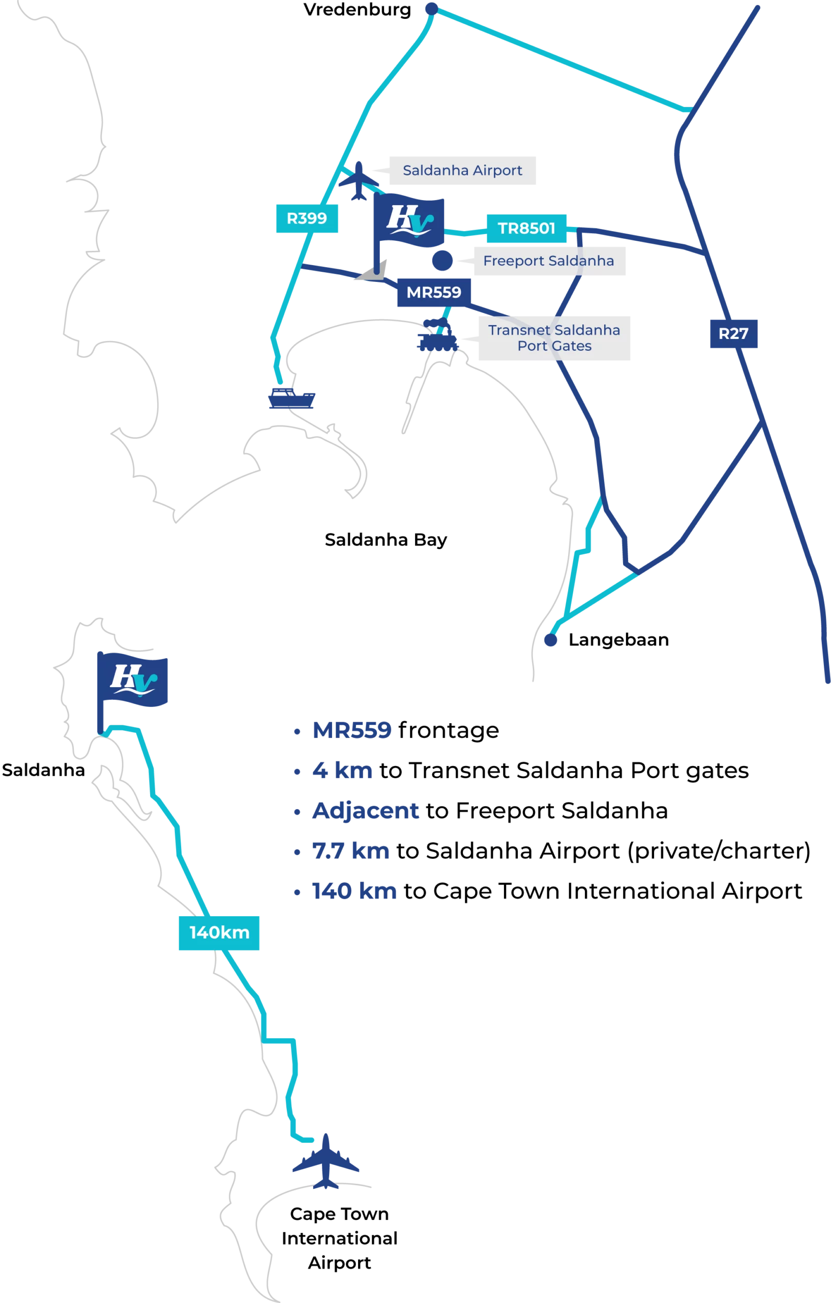 Harbour View Industrial Development in Saldanha offers premium serviced light-industrial plots tailored for owner- operators, logistics companies, manufacturers, and commercial property investors. The region is easily accessible from Saldanha to Cape Town, Stellenbosch, Paarl, Piketberg, and Malmesbury.